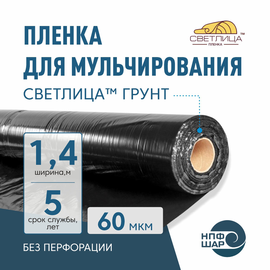 Пленка СВЕТЛИЦА™ ГРУНТ 60 мкм полотно 1,4 м 400 пог.м (560 м2) черная (рулон)